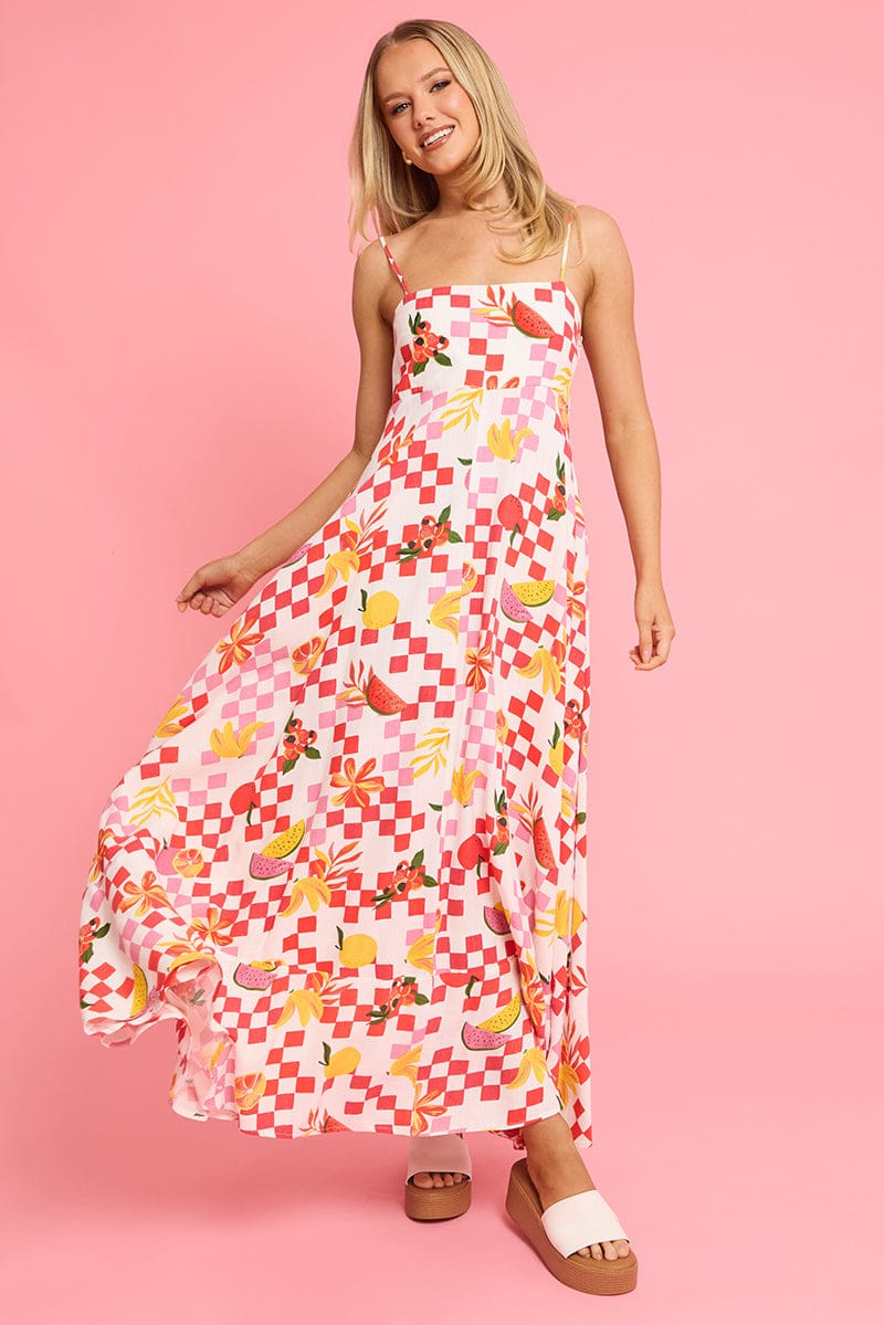 Red Abstract Maxi Dress Strappy