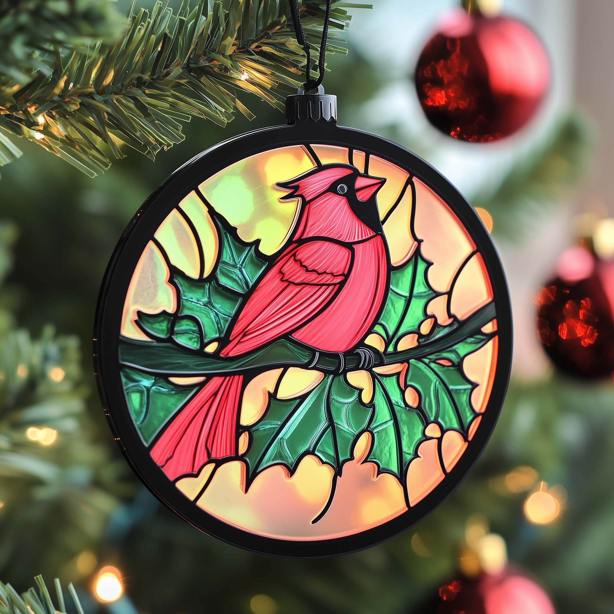 Stained Cardinal Christmas Mica Ornament GFSPQM350